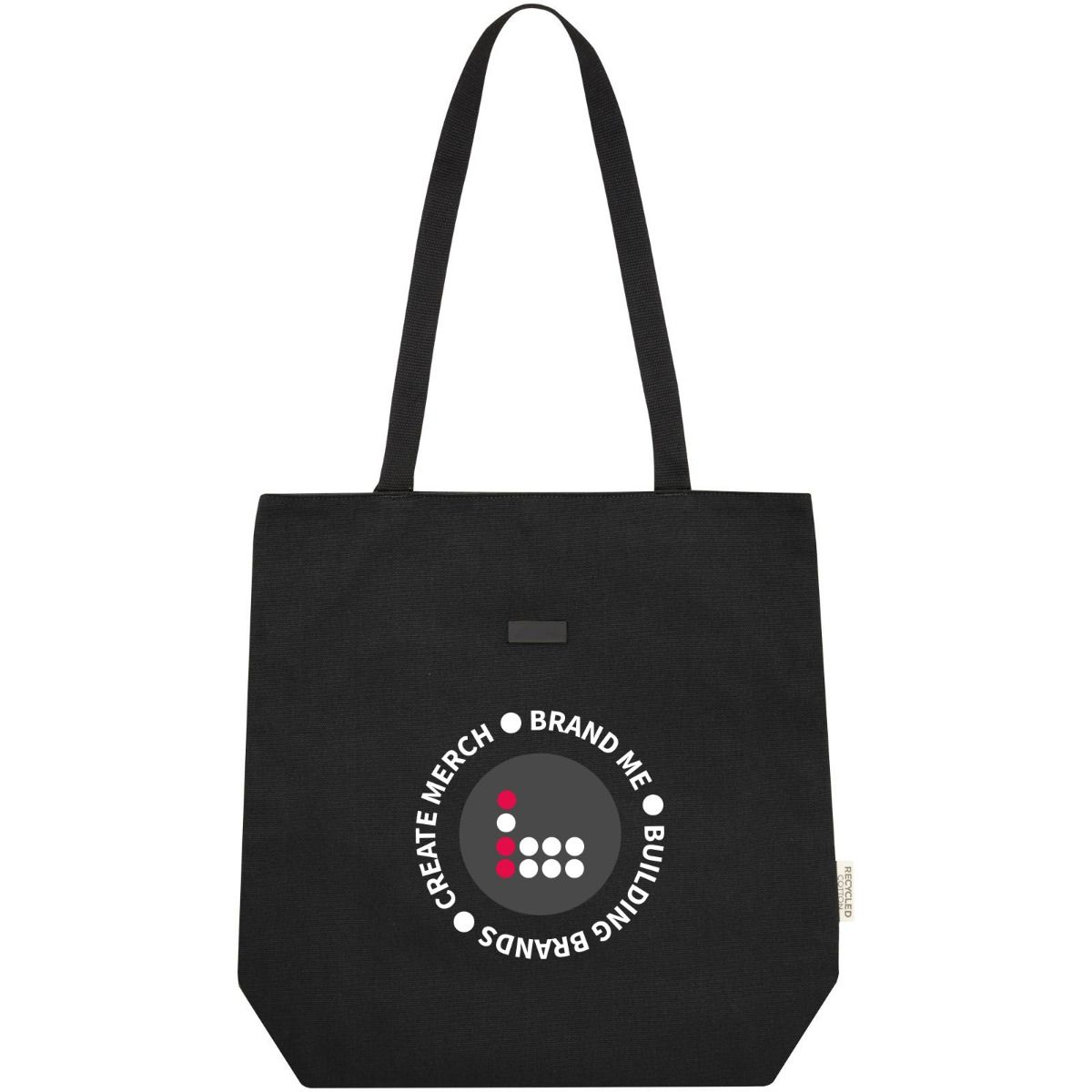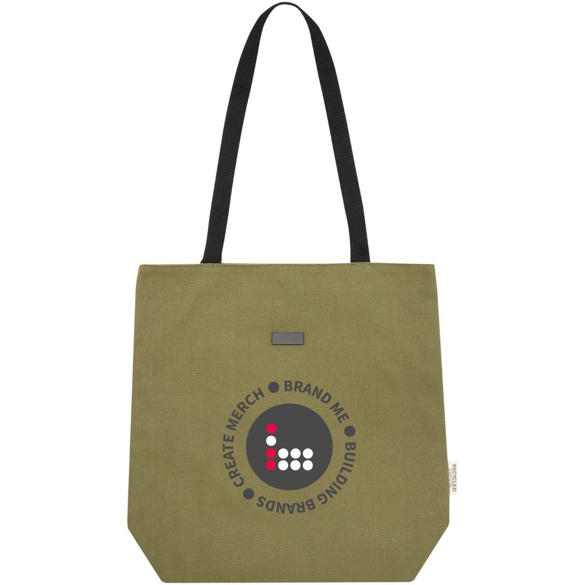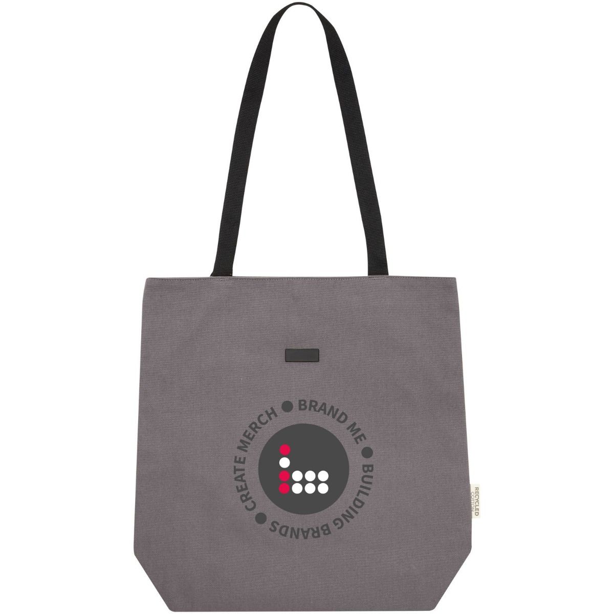 Joey GRS Recycled Canvas Versatile Tote Bag 14L. Tote bag made of GRS certified recycled canvas and GRS certified RPET lining. This versatile tote bag features a padded 15" laptop compartment and two sleeve pockets inside for a phone, wallet or accessories, and an easy button closure to the opening and comfortable cotton webbing handles. The decorative metal plate can make a logo shine through its subtle and matt finish.