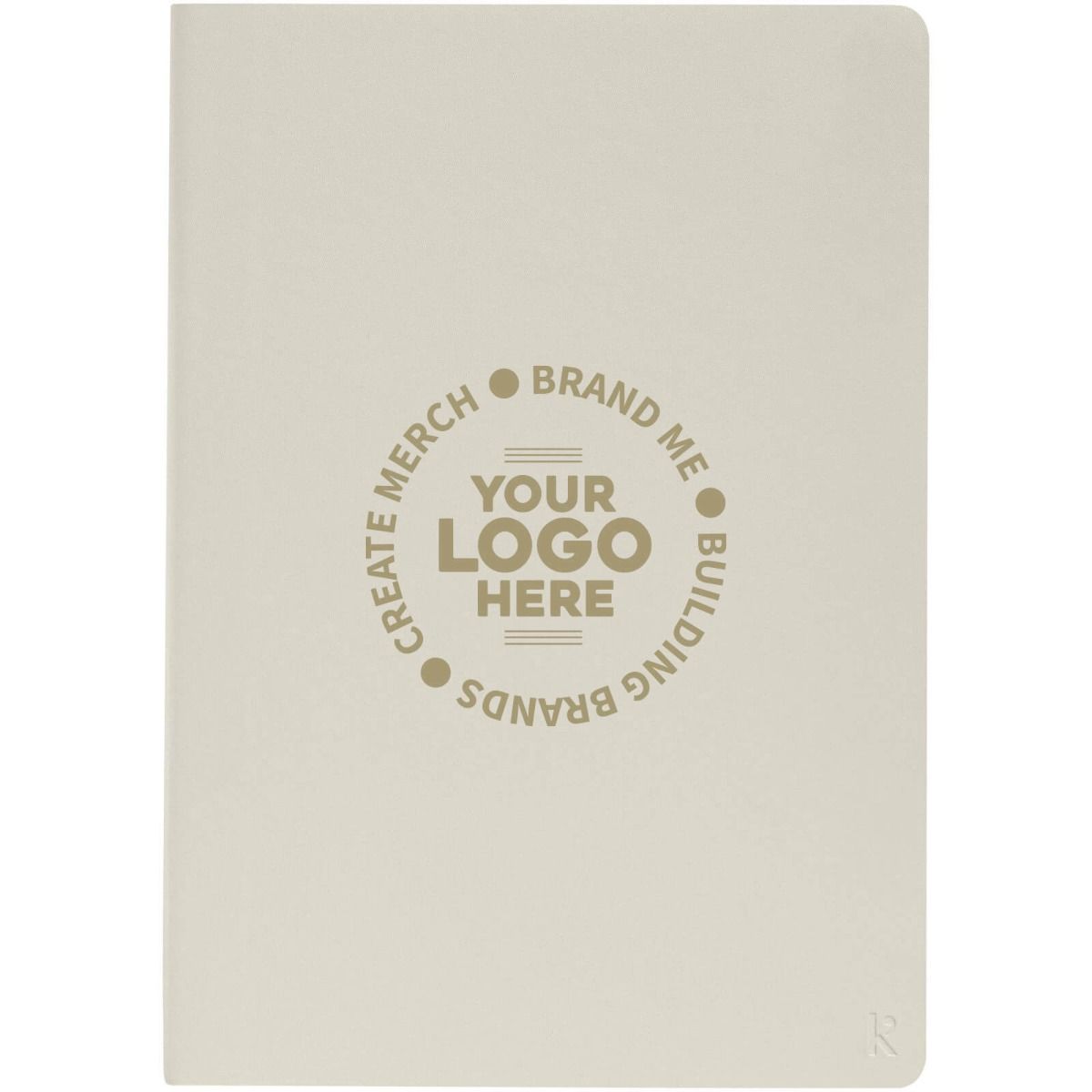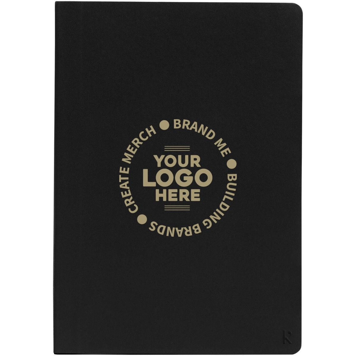 Promotional Karst Eco A5 Notebook Softcover Vegan Leather. The Karst® A5 softcover notebook is the most luxurious notebook in the Karst® collection, and has a durable and flexible vegan leather cover. Its waterproof cover and pages will keep it from absorbing moisture for those rushed early-morning coffee runs. Features an elastic band to keep notebook shut, 144 waterproof, tear-resistant lined pages, an expandable back pocket for storage, and a divider ribbon with heat-sealed tip and rounded corners.