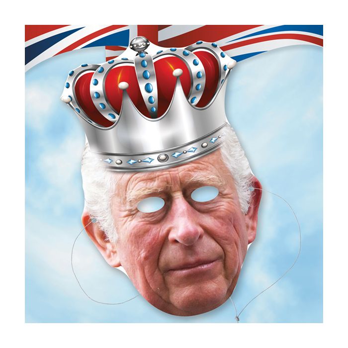 Promotional King Charles III Coronation Face Mask. Novelty face masks to celebrate King Charles III coronation. Our customised Coronation face masks are a great low cost promotional item to celebrate the up coming Kings Coronation. An ideal giveaway to show your support when the country will come together over this exciting long weekend of joy and celebration. Our promotional Coronation face masks are branded with a full colour print with your company logo or branding. They are made from durable 380gsm card.