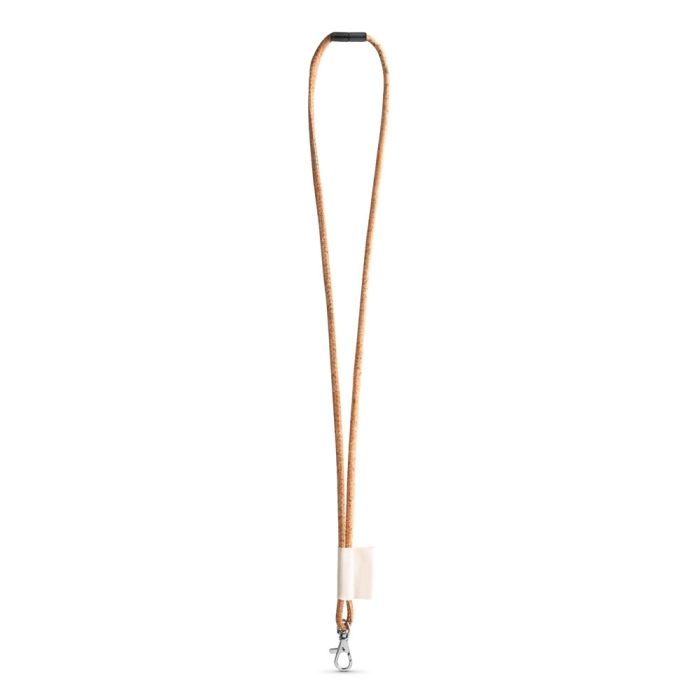 Customisable Original Lanyards® cork lanyard. Includes the following accessories and extras: Cotton label (43 x 15 mm), carabiner (9 mm) and safety lock. ø5 x 470 mm