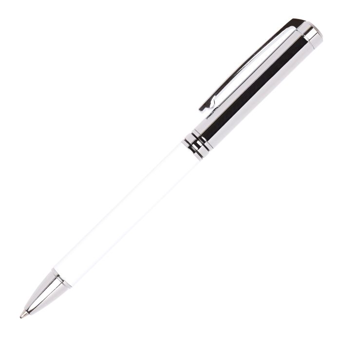 LEGANT metal ball pen with WHITE barrel and chrome top barrel. Black ink
