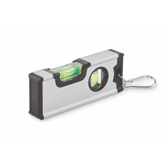 Mini magnetic double spirit level in aluminium case with carabiner. The carabiner is not for climbing (non-professional use).