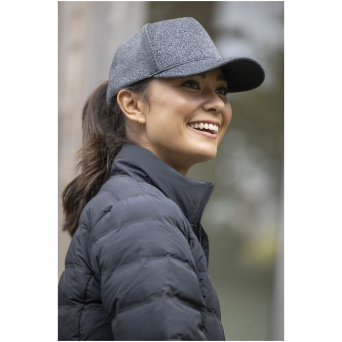 The Manu 5 panel stretch cap features a pre-curved visor providing essential sun protection. The embroidered eyelets ensures optimal ventilation, keeping it cool and comfortable during activities. With a head circumference of 58 cm, it guarantees a tailored fit for a variety of head sizes. The metal buckle closure provide effortless adjustability, allowing to achieve the perfect fit. Made of 300 g/m² polyester and elastane, a fabric combination that offers optimal flexibility.