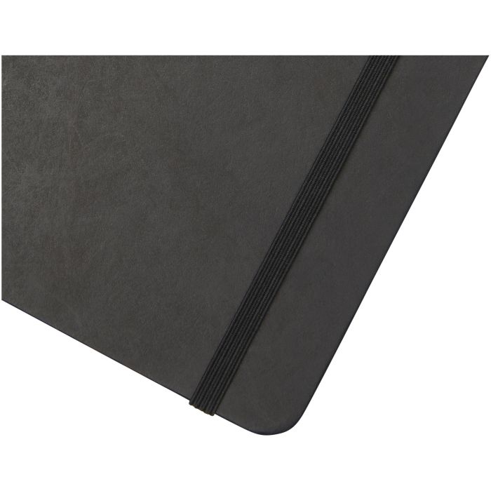 Promotional Marksman Breccia Notebook Eco A5 With Sustainable Stone Paper. A5 size tear resistant notebook with inner pages made from stone. Stone paper is 100% tree free and the production process uses less energy compared to recycled or new pulp paper. It's water resistant so liquids spilled can easily be wiped off. Features a colour matching ribbon marker and elastic band and 60 sheets 120 g/m² lined stone paper. Packed in a cardboard sleeve.