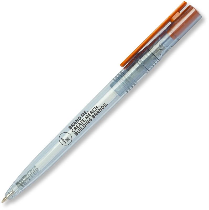 Promotional Montreux Clear FT Pen. The MONTREUX pen is produced with rPET certified materials from water and soda bottles with the exception of the refill and spring. This Twist pen has an excellent print area on barrel and clip with a jumbo refill writing over 2500m. A variety of 16 colours make this pen a promotional success.