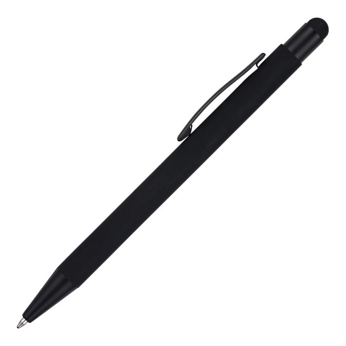 A soft-feel all black stylus pen with matching trim provides a super sleek look. A gold undercoat provides a stylish engrave option. Chrome under coat option also available (TPC580403)