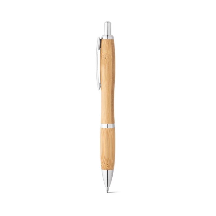 Bamboo ball pen with clip and metal trim. Black ink. ø13 x 143 mm