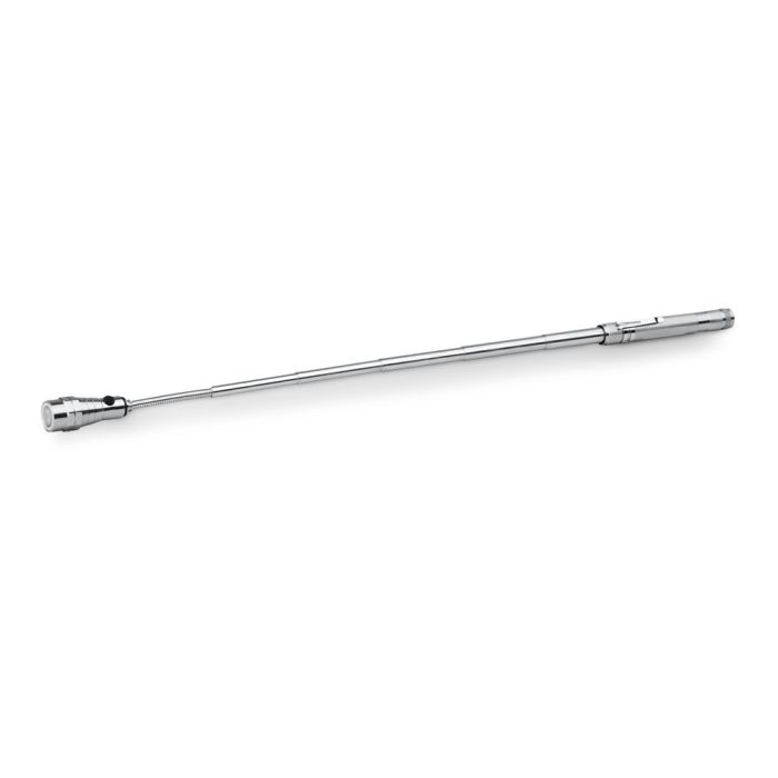 Extendable and flexible metal LED torch with 3 LEDs, magnet on the tip and clip. Includes 4 LR44 lithium batteries. ø22 x 175 mm