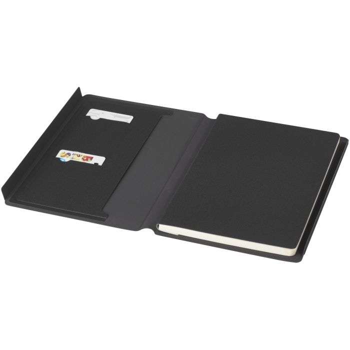 The RCS certified Notu padfolio is partly made from recycled post-consumer polyester, making this padfolio a more sustainable choice since it helps to reduce the use of virgin raw material. Featuring a magnet closure, accordion pocket, and 64 cream coloured lined sheets with 80 g/m2 recycled paper from sustainable sources.