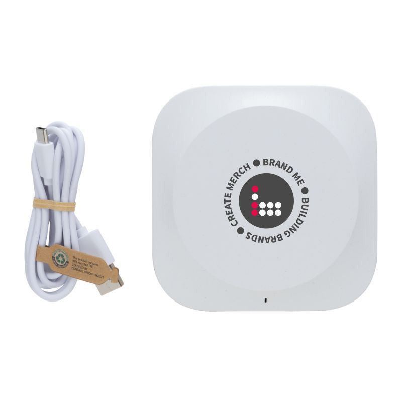 The Oregon Wireless charger is compatible with Android latest generations, iPhone 8 and up. Item and accessories PVC free. Including 120 cm cable including type UBC C charging. The cable is made from RCS certified recycled TPE. Packed in eco mix kraft box. USB Type-C Input 5V/2A; 9V/2A; Wireless output 5V/1A;9V/1.1A; (10W) Packed in eco mix kraft packaging. Item and accessories 100% PVC free.
