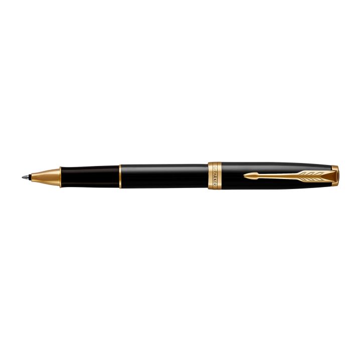 Stainless steel and laquered brass Parker Sonnet ballpen with twist mechanism. Supplied in a presentation gift box. (If plain stock ordered, the presentation box and pen are supplied separately)