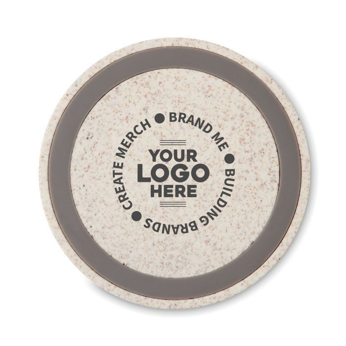 PLATO+ Wheat Straw/ABS Charger 5W. Promotional Wireless charging pad in wheat straw (35%) and ABS (65%). Connect device, place smartphone on it to begin charging. Output: DC5V/1A (5W). Compatible with latest Androids, iPhone® 8, 8S and X and newer.