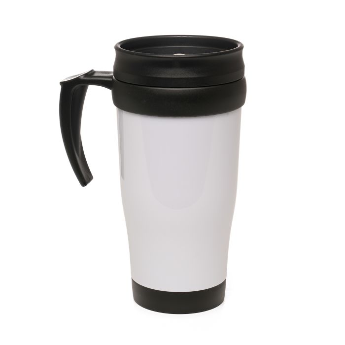 Recycled 'Polo Plus' 400ml Plastic Solid WHITE Travel Mug
