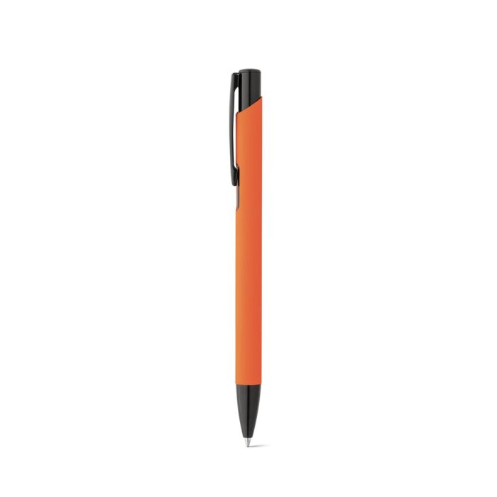 Aluminium ball pen with coloured body and rubber finish. Blue ink. ø10 x 137 mm