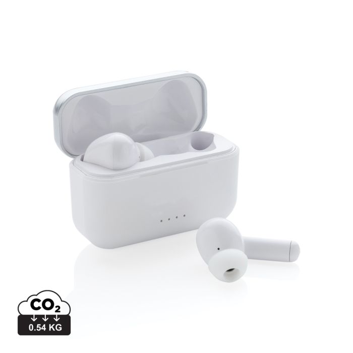 Promotional Pro Elite TWS Earbuds. Next level true wireless earbuds in charging case with extra-long lasting battery, wireless chargeable case and extra clear sound quality and bass. The perfectly fitting earbuds have a 30 mAh battery and can be re-charged in the 300 mAh charging case within 1.5 hours via ultra-fast type C input. The charging case can also be charged by placing it on any wireless charging surface. With auto pairing function it is easy to pair to your mobile device. Playing time on medium volume about 6 hours and a standby time of 40 hours. With BT 5.0 for optimal connection. Operating distance up to 10 metres. With pick up and mic. Including 3 size silicone ear tips. Durable ABS material. With stereo function and mic to answer calls in stereo. Including 3 size silicone ear tips. Including PVC free TPE material micro charging cable.