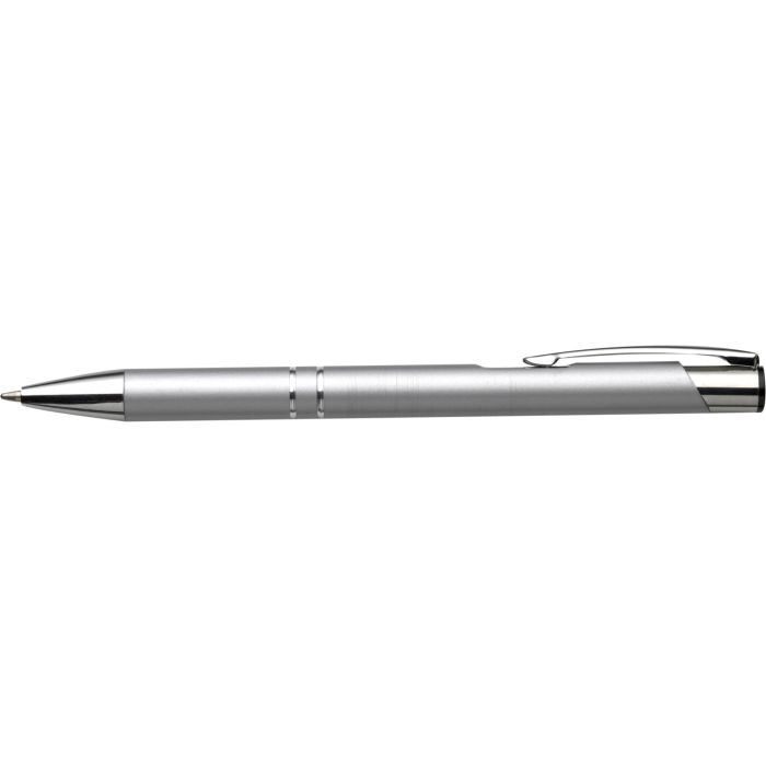 Aluminium ballpen with push button and arrow shaped metal clip, blue ink. Provided with German Dokumental Ink.