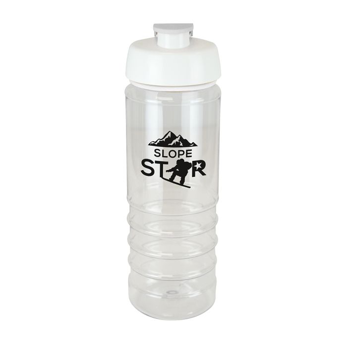 750ml single walled, translucent, Tritan plastic drinks bottle. Features include a white PP lid with a coloured PE flip top and matching coloured silicon trim. BPA & PVC free