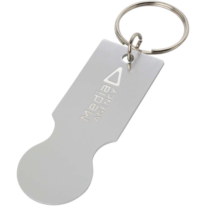 The Rhea metal keyring with trolley coin is designed to fit most supermarket trolleys, allowing you to unlock them without coins or tokens.