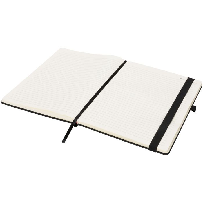 The Rivista Notebook range has a stylish modern design with a high quality, tactile cover, ideal for adding your company logo and details. It’s available in a selection of contemporary colours. Features include an elastic closure, ribbon page marker, pen loop and storage pocket to the inside back cover. Includes 128 sheets (70g/m2) cream lined paper.