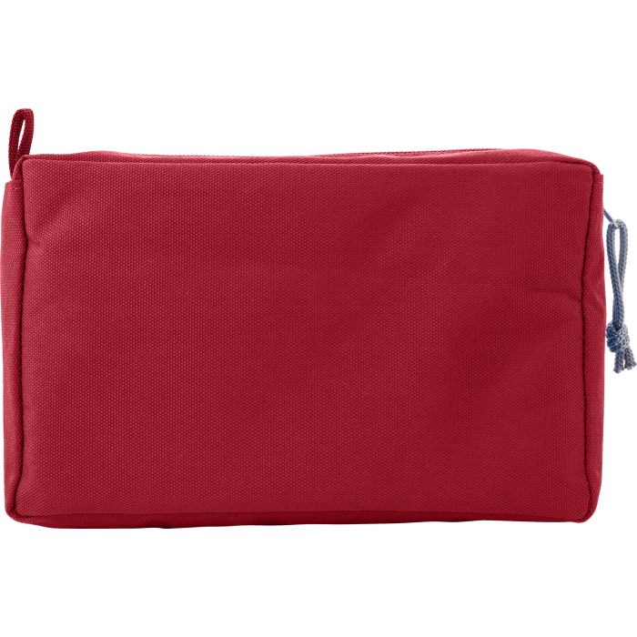 Get your hands on this eco-friendly toiletry bag. Made from durable rPET materials, this bag features a main zipper to access your essentials as well as side pockets to separate your products for better organisation. Perfect for working professionals heading on business trips, individuals going away on holiday, or school students. With blue, black, or red colour options available, you can be sure to find your customers a bag that suits their branding.