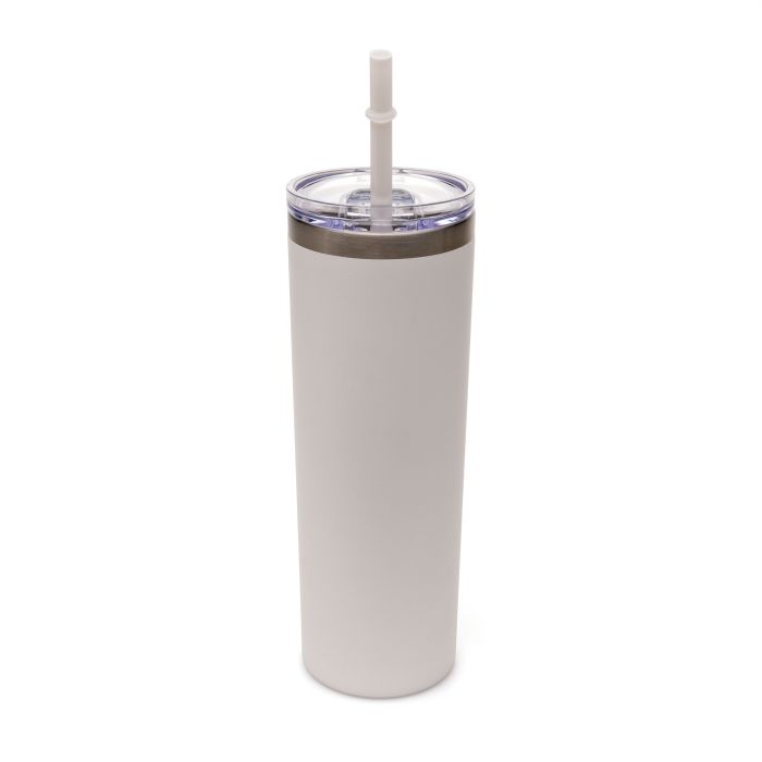 580ml double walled stainless steel RCS certified tumbler with clear PS push on lid and Silicone straw to prevent spills. A stylish promotional product for those who travel or are constantly on the go. BPA & PVC free.
