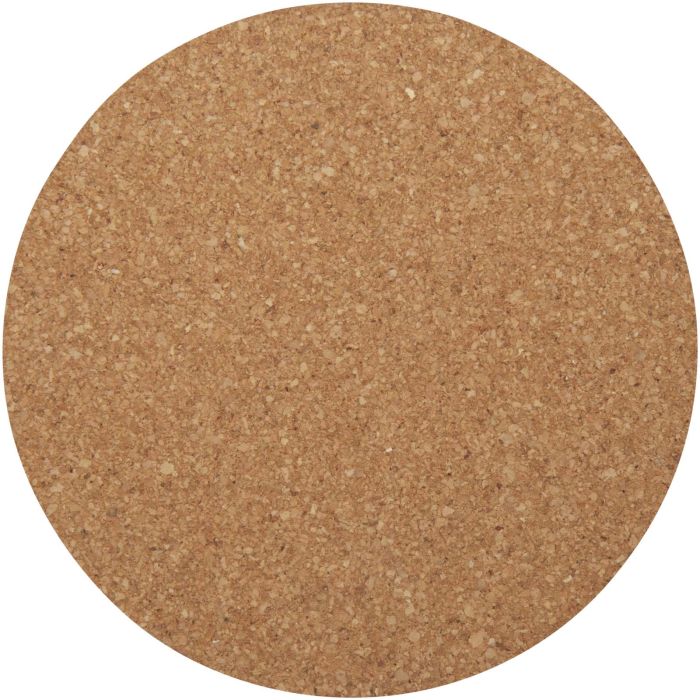 Round coaster made of cork sourced from more sustainable and socially responsible sources. Size: 10 x 0.5 cm.