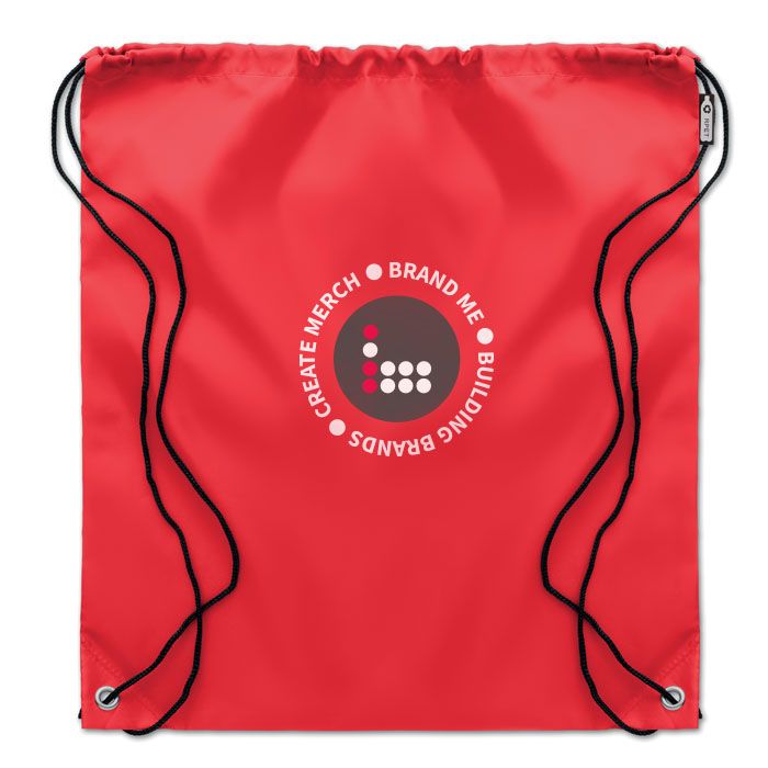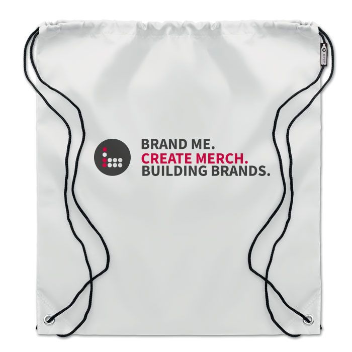 Promotional SHOOPPET Eco Drawstring Bag Made From Recycled Bottles. Drawstring bag in 190T RPET with PP strings. Eco-friendly material made from recycled plastic bottles.