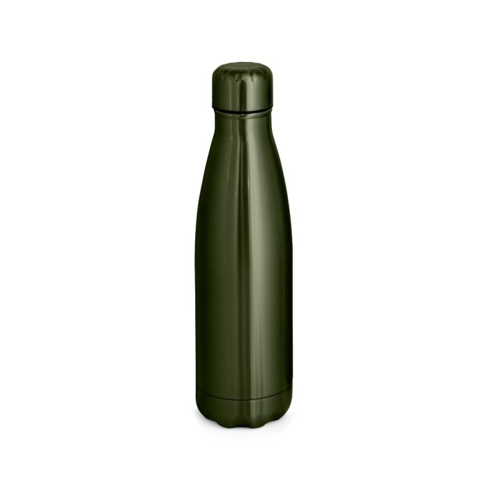 Stainless steel double-walled vacuum insulated bottle. Bottle with metallised finish and stainless steel cap. Capacity up to 510 mL. Supplied in a kraft paper gift box