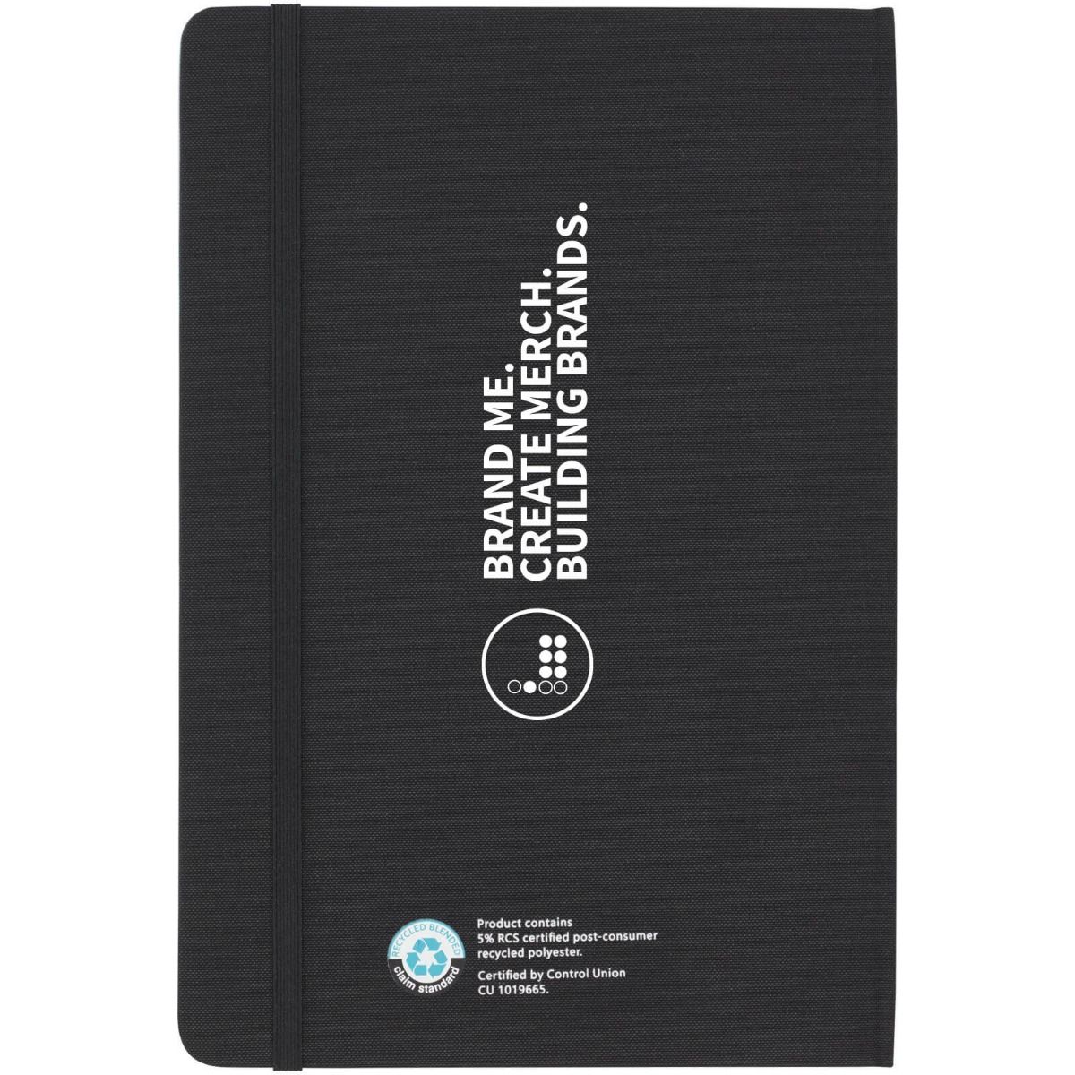 Promotional Skribo Ballpoint Pen And Notebook Set. The RCS certified Skribo pen and notebook set is partly made from recycled post-consumer polyester, making the set a more sustainable choice since it helps to reduce the use of virgin raw material.
