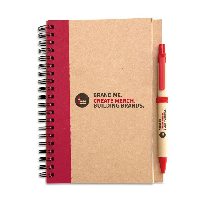 Printed SONORA PLUS Recycled Notebook With Eco Pen Wiro Bound Plain Paper. Recycled paper notebook + pen