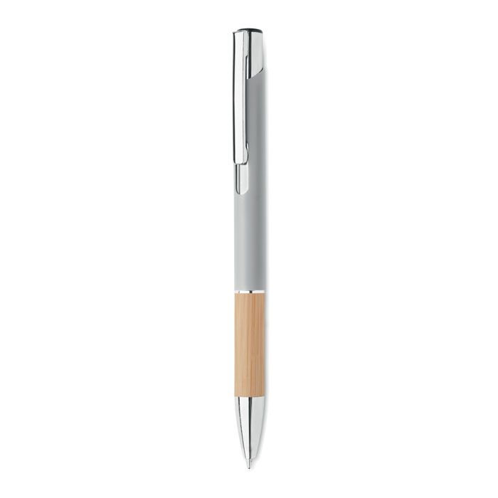 Promotional SPARTA Push Button Aluminium Pen With Bamboo Grip. Unique Design Push button pen in aluminium with mix bamboo grip. Blue ink.