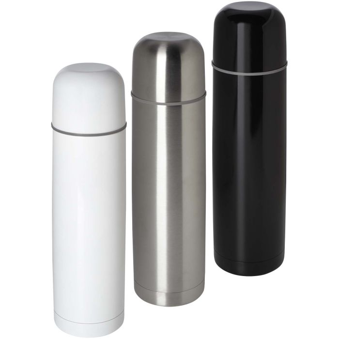 Double walled RCS certified insulated flask with cup lid. Single-hand, push-button spout which closes automatically when screwing the cup lid on to the bottle. Volume capacity is 750 ml.