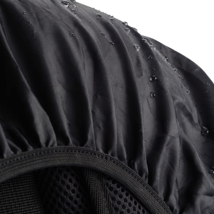 Printed Swiss Peak Outdoor Laptop Backpack. 1680D polyester laptop backpack with unique balance between comfort and outdoor protection. The backpack has pockets for all your necessities from padded laptop compartment and iPad holder, to pen loops and mesh pockets. On the shoulder strap there is an audio jack to connect your headphone and a sunglasses carrier. It even has a rain cover to protect it all. Registered®