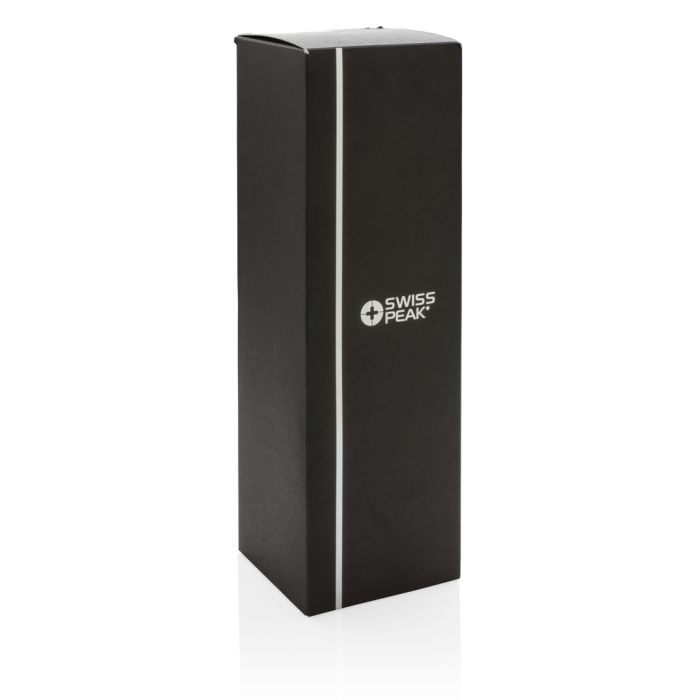 Printed Swiss Peak Tritan Water Bottle. Leak proof Tritan bottle. Ideal to take on long outdoor activities or while doing sports. Including silicone ring for improved grip. BPA free. Capacity: 750ml.