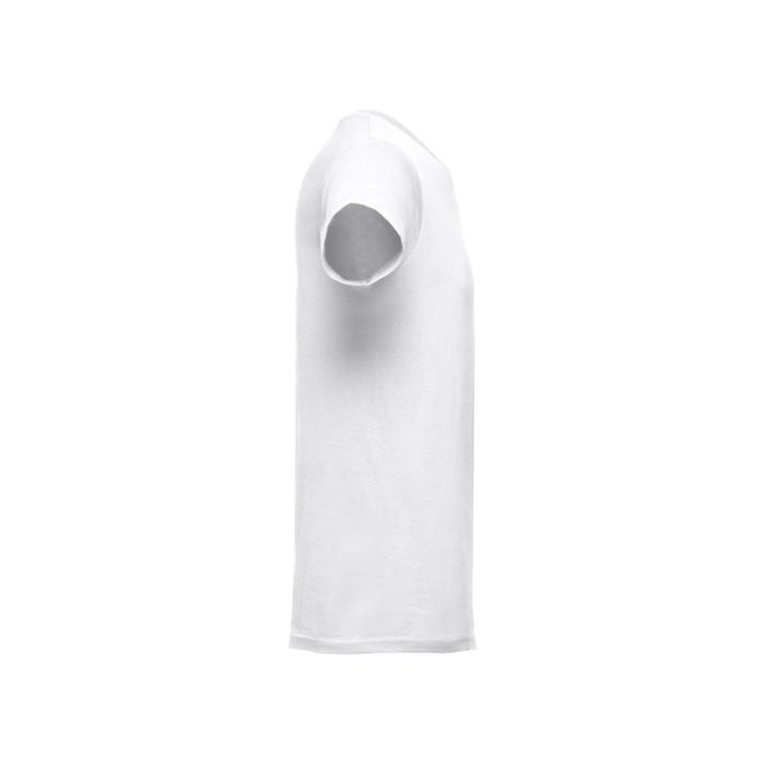 Tubular t-shirt for men in with a regular cut in jersey 100% cotton (150 g/m²) with carded cotton yarn. Features a 1x1 rib collar with jersey reinforcement ribbon and double seam on sleeves and hemline Size: 3XL