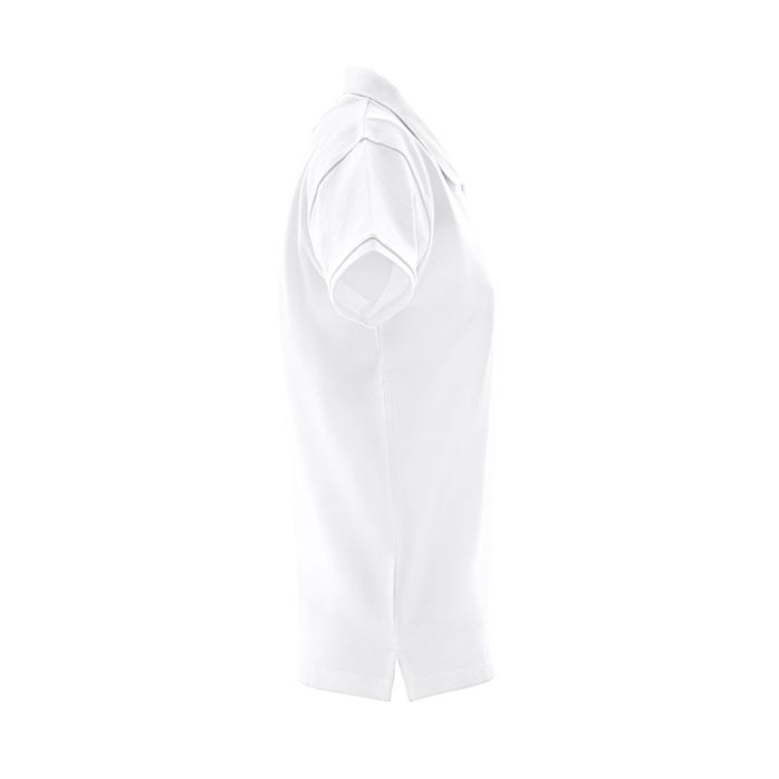 100% carded cotton (240 g/m²) short-sleeved pique women's polo. Regular cut with collar and ribbon sleeves and pique collar reinforcement. Reinforced collar with 2 matching coloured buttons (extra button in the inner seam). Piece cut and sewn with small side vents at the hem of the polo. The visible label is removable