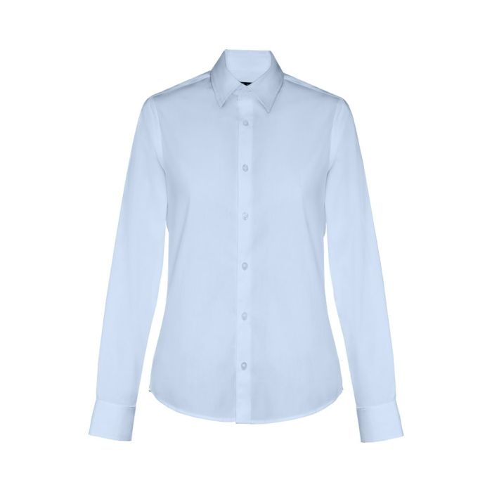 Long-sleeved shirt for women in 68% cotton, 28% polyamide and 4% elastane (115 g/m²). Long sleeve with 1 pleat and adjustable cuffs with 1 button. Fitted waist with 2 darts on the back and placket with 7 matching colour buttons. Sizes: S, M, L, XL, XXL