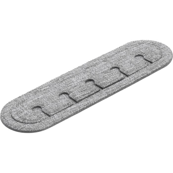 Organise your cables effortlessly. A simple solution to cluttered cords around your desk, TV, computer, or phone . With 5 slots for cables up to 6mm, it's compatible with all charging and peripheral cords. Foldable and adhesive-backed for easy placement. Made from 0.3 recycled PET bottles