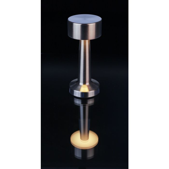Touch control table light with 24 LEDs and three light modes (white, neutral, warm) controlled by a touch sensor on the top. Includes an 800 mAh battery and Type-C charging with a 1-meter cable. The lamp is dimmable per light mode and has an on/off button on the base. Individually packaged in a brown cardboard box.