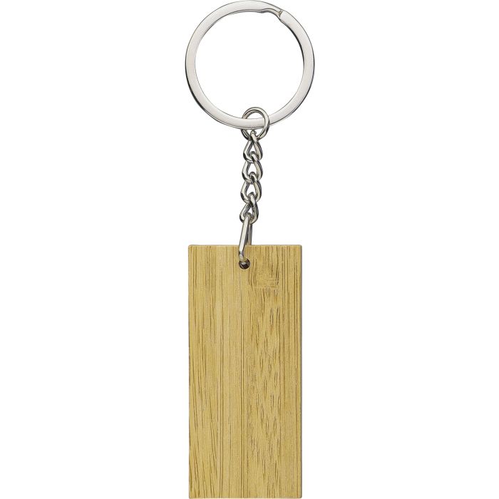 Bamboo writing set consisting of a bamboo and rubberized recycled aluminium ballpen and a bamboo and rubberized stainless steel rectangular keyring. Both items feature a mirror effect after laser engraving and include a recycled aluminium logo. Packed in a kraft paper box with velvet inlay.
