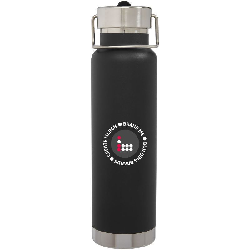 The thor bottle construction also prevents condensation on the outside of the bottle, and the on-trend powder coating makes it extra durable. Stainless steel screw-on leakproof lid featuring an integrated straw and a durable stainless steel hand loop.