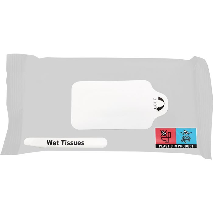 Sealed bag with 10 pcs nonwoven, pre-moistened tissues.