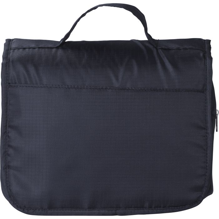 Our polyester toiletry bag is great for organising essentials and is made from resilient ripstop material. Featuring a convenient hanging hook, this bag is perfect for travel or daily use, keeping toiletries secure and easily accessible.