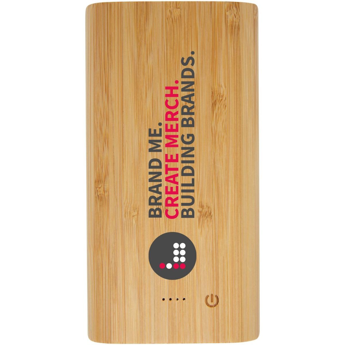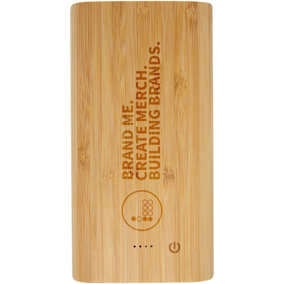 Promotional Tulda 20000mAh Bamboo Power Bank. 20.000 mAh power bank made from bamboo, featuring an ON/OFF touch button and 4 LED indicators to show the remaining battery capacity. Micro USB input 5V/2A, Type-C input 5V/3A, Type-C output 5V/3.1A max, dual USB-A output 5V/3.1A max, total power 15.5W. Delivered with a 30 cm TPE 3A Type-C to Type-C charging cable, an instruction manual and a kraft paper gift box. Since bamboo is a natural product, there may be slight variations in colour and size per item, which may affect the final printing outcome. Branded Bamboo Products.