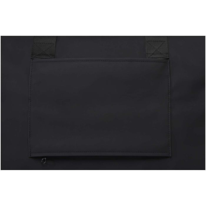 The Turner duffel bag is made of 51% GRS certified recycled plastic and the lining is made of 100% GRS certified RPET. The duffel features a padded 15.6" laptop compartment, an internal strap for securing a water bottle, and a zipped pocket for smaller items. Additionally, a luggage strap on the back allows for easy attachment to rolling luggage, making it a convenient travel companion. The duffel can be carried by the 2 short handles, or by the expandable and detachable shoulder strap that can be adjusted for maximum comfort. Volume capacity: 36 litres.