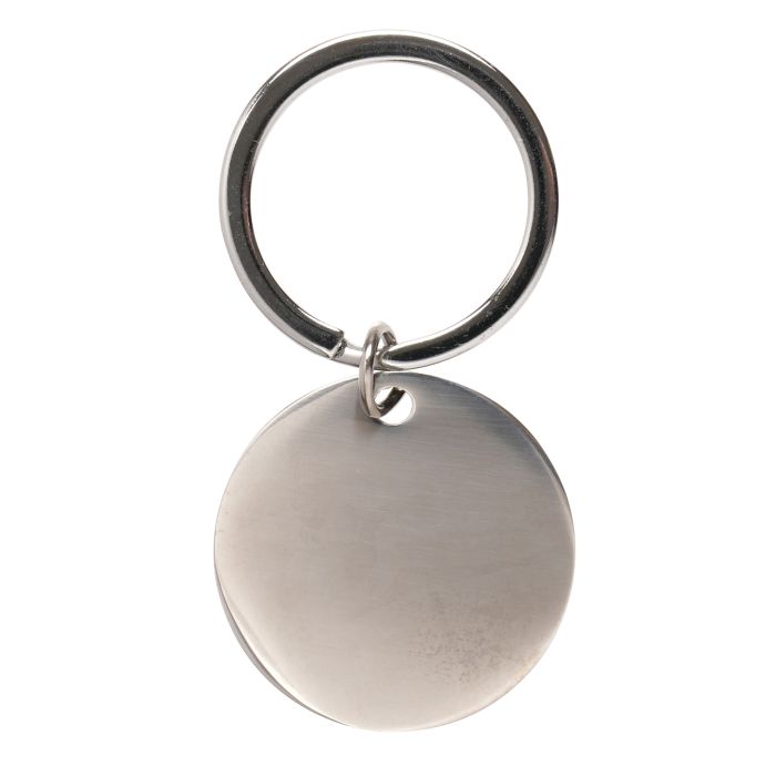 A vibrant stainless steel circular keyring with a split ring attachment that can be customised with a full colour UV printed design for a long lasting, detailed finish that is resistant to fading and scratching over time.