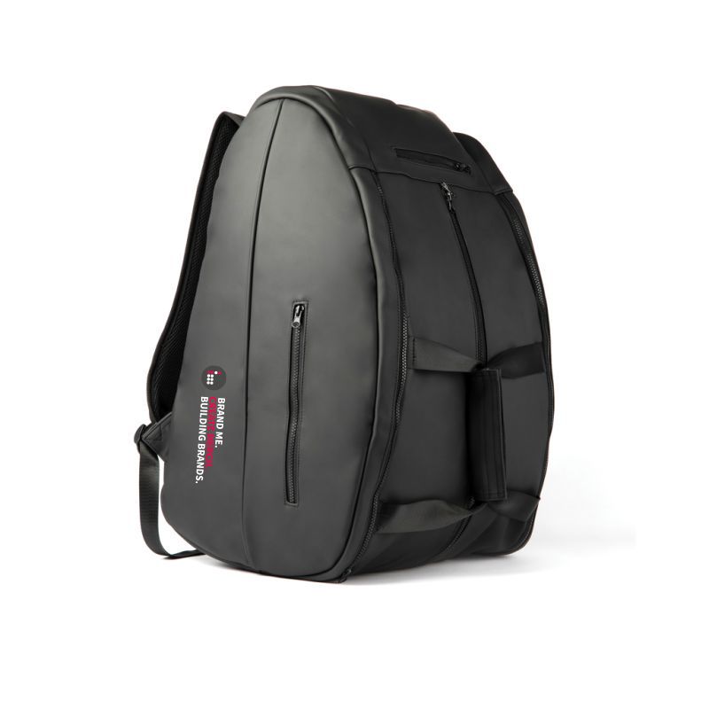 Branded VINGA Baltimore Gym Backpack. This Gym backpack has a large main compartment and two side compartments for rackets. One short side has a separate compartment for gym shoes. Small, concealed zippered pockets for valuables.