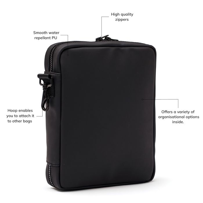 VINGA Baltimore Organiser. Keep all essentials near at hand with this handy organiser. This gives you a space for everything you need during a day, such as headphones, power bank, pens and notebooks. The snap hook on the short side allows you to attach the bag to a larger bag.