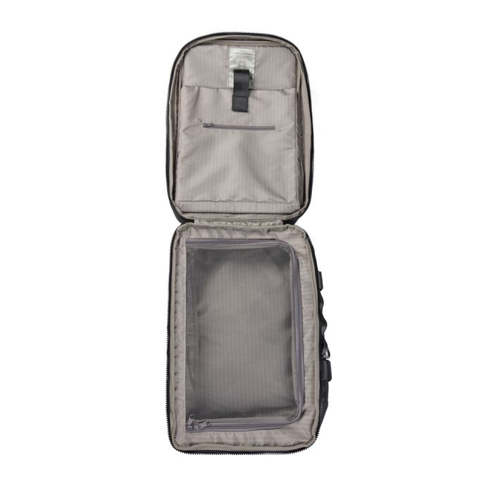 The ultimate companion for your adventures. Crafted with partly RCS certified recycled polyester. The exterior features a sleek PU finish, with mesh backing on the shoulder straps and back for maximum comfort. Designed for convenience, the bag can be fully opened for easy access. With multiple smart features, it offers a laptop compartment, two exterior pockets and a roomy mesh section inside to keep your gear organised. A sturdy top handle and a carabiner to secure smaller items. The clever strap at the back allows easy attachment to a trolley bag. A side zipper offers convenient access to the main mesh compartment. This is the ideal backpack for both daily commutes and weekend adventures. Certified by RCS (Recycled Claim Standard), RCS certification guarantees that the entire supply chain of recycled materials is certified. The total recycled content is based on the overall product weight. This product contains 16% RCS certified recycled polyester.
