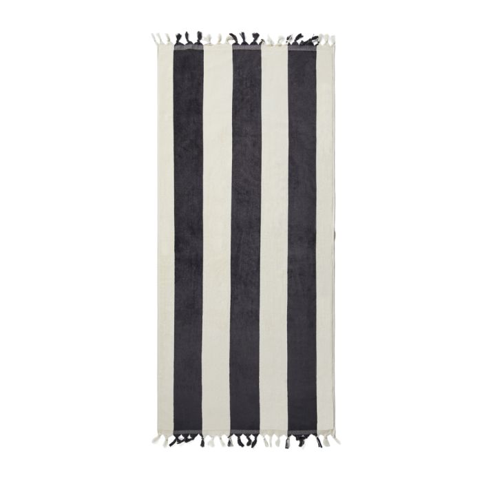 A luxurious cotton beach towel with tassels at the short ends, for days at the beach or pool. Our beach towels are made in India with cotton, and have a thickness of 450 g/m2. OEKO-TEX® STANDARD 100. 09.HIN.68091. Hohenstein HTTI.
